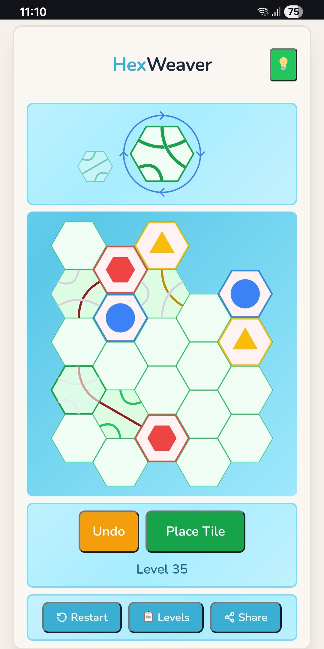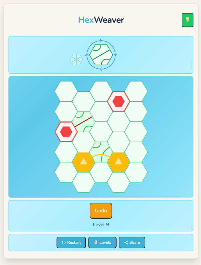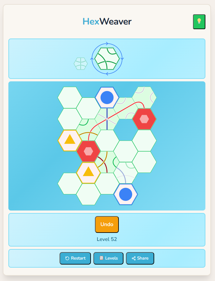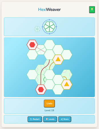 Hex Weaver is a relaxing hex tile puzzle game. Place path tiles on a hexagonal grid to connect all the coloured stations across hundreds of handcrafted levels.